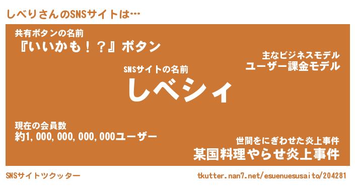 | 男性向けラノベタイトル風あだ名 | 『しべりの憂鬱』 |
