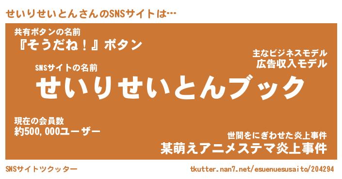 | 男性向けラノベタイトル風あだ名 | 『セイリセイトンアートオンライン』 |
