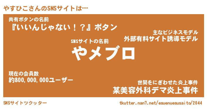 | 男性向けラノベタイトル風あだ名 | 『ヤスヒコアートオンライン』 |