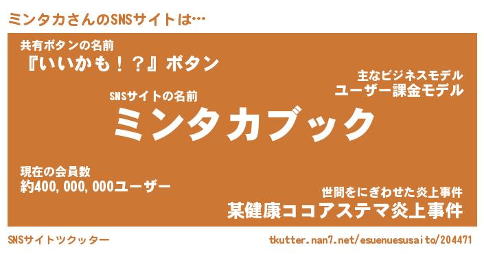 | ヘコむあだ名 | 『ミンにゅー』『酢こんぶ』『ミンを』 |