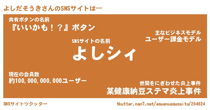 | ヒーロー風カッコイイあだ名 | 『スーパーヨシダソウキ』『幻影騎士ヨシ』 |