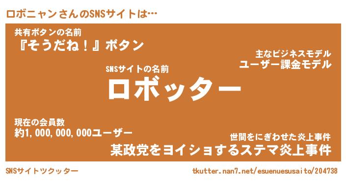 | 男性向けラノベタイトル風あだ名 | 『ロボニャンアートオンライン』 |