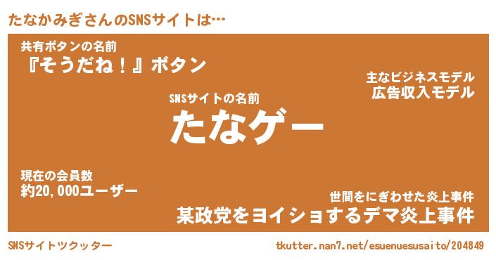 | ヘコむあだ名 | 『たなにー』『酢こんぶ』 |