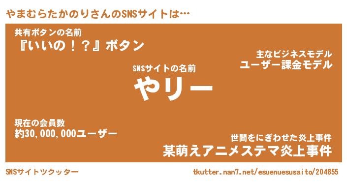 | 女子向けラノベタイトル風あだ名 | 『やまむらたかのり姫と円卓の騎士』 |