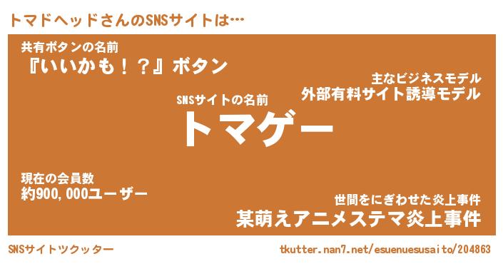 | 男性向けラノベタイトル風あだ名 | 『トマドヘッドの憂鬱』 |