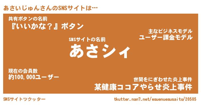 | 男性向けラノベタイトル風あだ名 | 『あさいじゅんの憂鬱』 |