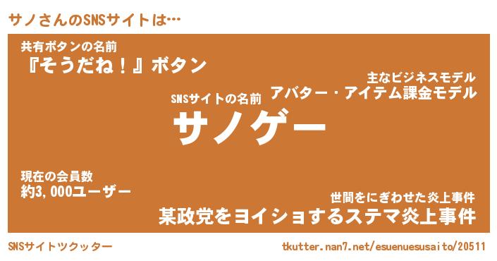 | ファンタジー風あだ名 | 『サノフェル』『エターナルサノー』 |