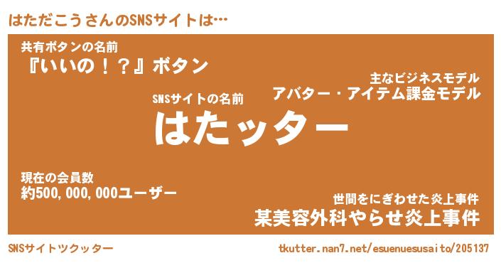 | 胡散臭い通販商品みたいなあだ名 | 『億万長者になれる水晶球…その名も「はただこう」』 |