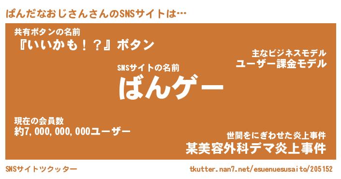 | 伝説のあだ名 | 『伝説のスナイパーばんだなおじさん』 |