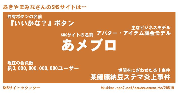 | ツイッター | あきやまみなさんのツイッターID『katatsumuri_star』 |