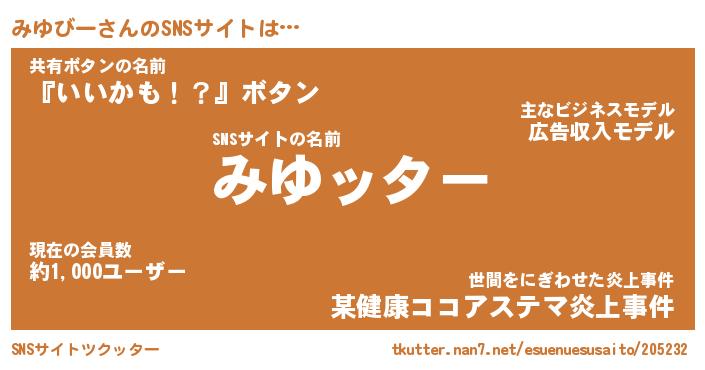 | 意味不明あだ名 | 『ペロリンみゆびー』『永久保存みゆびー』 |