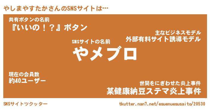 | 男性向けラノベタイトル風あだ名 | 『ヤシマヤスタカアートオンライン』 |