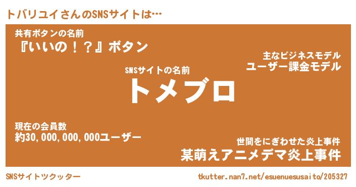 | ファンタジー風あだ名 | 『トバフェル』『エターナルトバリユイー』 |