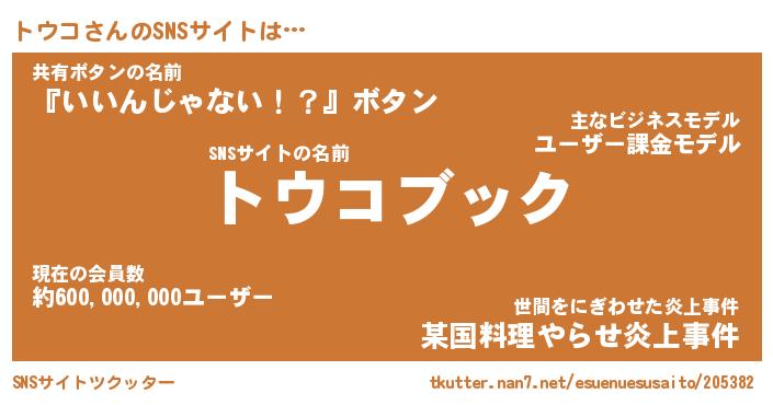 | 胡散臭い通販商品みたいなあだ名 | 『億万長者になれるブレスレット…その名も「トウコ」』 |