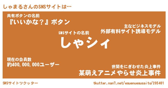 | 胡散臭い通販商品みたいなあだ名 | 『必ず成功するブレスレット…その名も「しゃまる」』 |