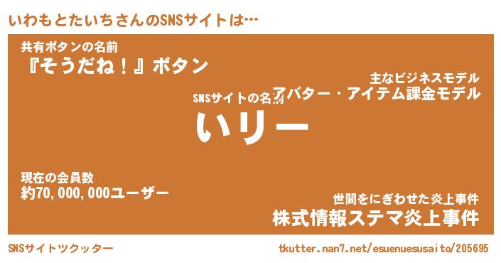 | 肩書あだ名 | 『いわもとたいち社長』 |