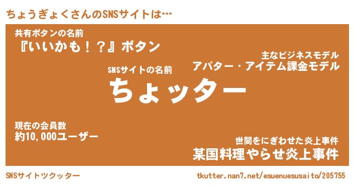 | 欧米人風あだ名 | 『マイケルちょうぎょく』 |