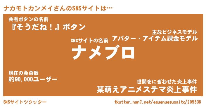 | 男性向けラノベタイトル風あだ名 | 『ナカモトカンメイアートオンライン』 |