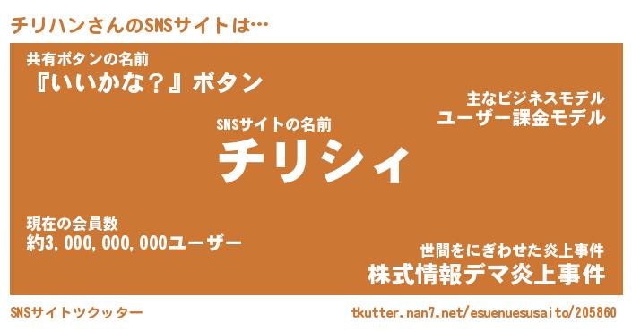 | ファンタジー風あだ名 | 『チリフェル』『エターナルチリハンー』 |