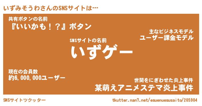 | ヘコむあだ名 | 『いずにゅー』『なまこ酢』『いずお』 |