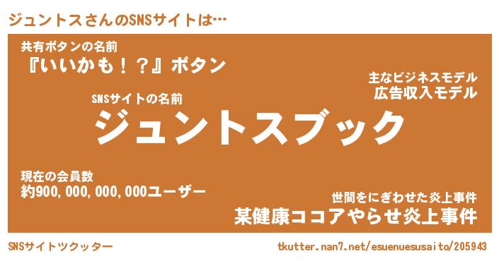 | 肩書あだ名 | 『ジュントス店長』『ジュントス総理大臣』 |