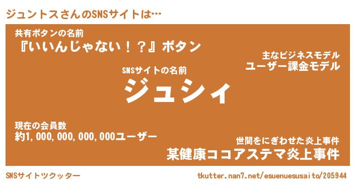 | 胡散臭い通販商品みたいなあだ名 | 『必ず成功する霊験あらたかなお札…その名も「ジュントス」』 |