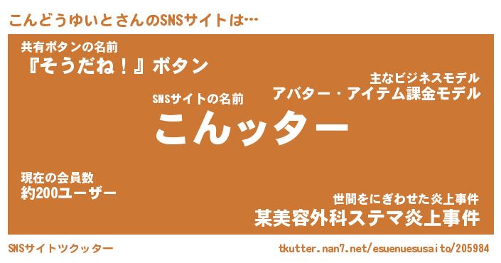 | 胡散臭い通販商品みたいなあだ名 | 『億万長者になれる霊験あらたかなお札…その名も「こんどうゆいと」』 |