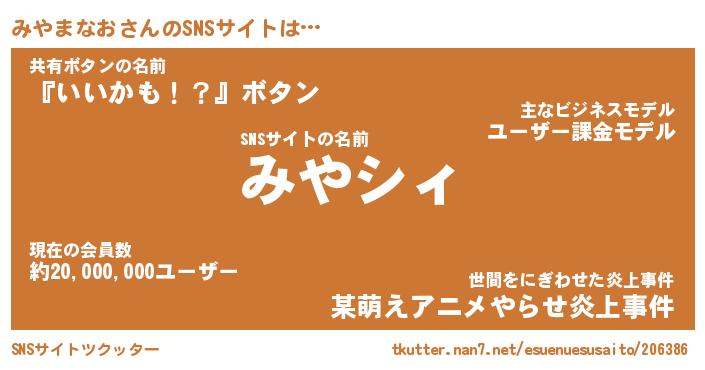 ヘコむあだ名 | 『みやにゅー』『なまこ酢』 |