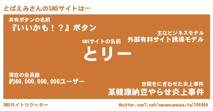 ファンタジー風あだ名 | 『トバフェル』『エターナルトバエミー』 |