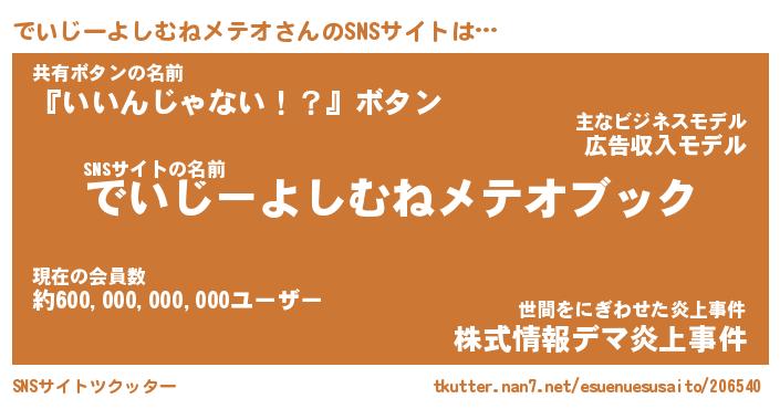 | 肩書あだ名 | 『でいじーよしむねメテオ社長』 |
