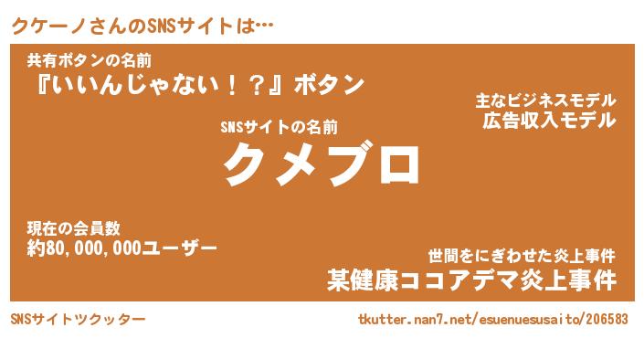 | 肩書あだ名 | 『クケーノ店長』『クケーノ大統領』 |