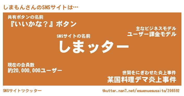 | 意味不明あだ名 | 『ペロリンしまもん』『永久保存しまもん』 |