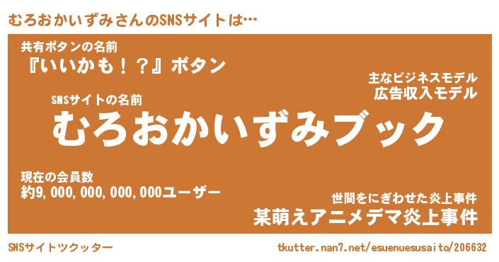 | 胡散臭い通販商品みたいなあだ名 | 『億万長者になれるブレスレット…その名も「むろおかいずみ」』 |