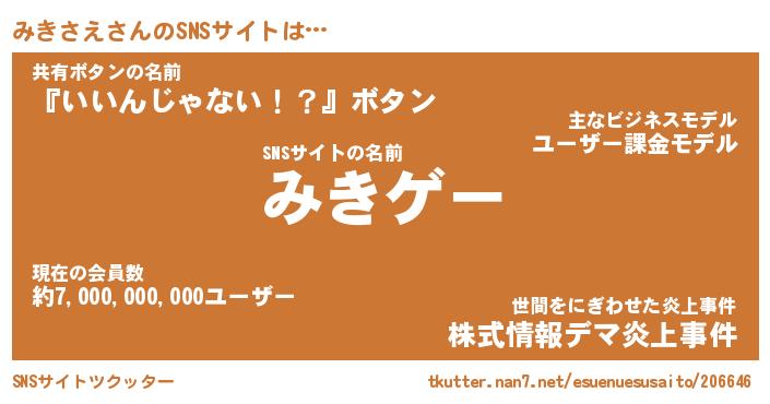 | 意味不明あだ名 | 『ペロリンみきさえ』『永久保存みきさえ』 |