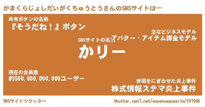 | 男性向けラノベタイトル風あだ名 | 『かまくらじょしだいがくちゅうとうの憂鬱』 |