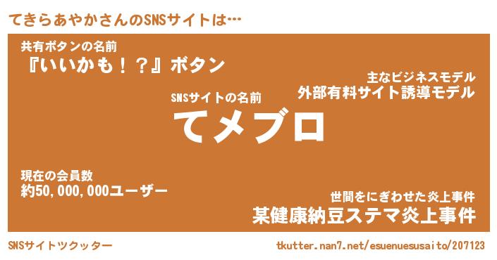 | 肩書あだ名 | 『てきらあやか店長』『てきらあやか団長』 |