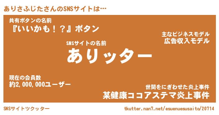 | 男性向けラノベタイトル風あだ名 | 『アリサフジタアートオンライン』 |