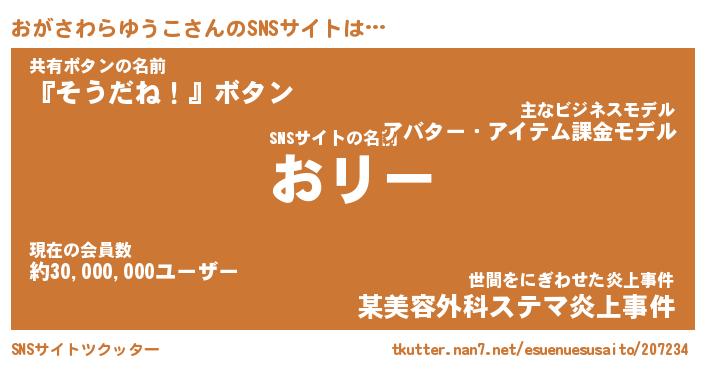 | ヘコむあだ名 | 『おがっふぃ~』『牛乳』『おがお』 |
