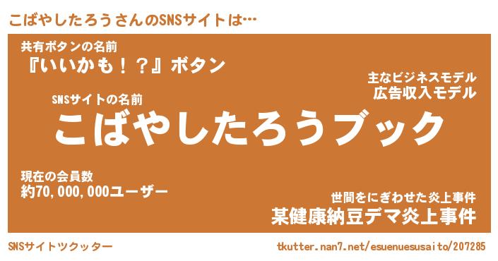 ヘコむあだ名 | 『こばっふぃ~』『なまこ酢』 |