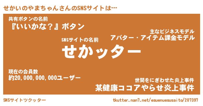 | 男性向けラノベタイトル風あだ名 | 『セカイノヤマチャンアートオンライン』 |