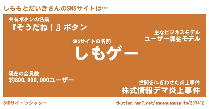 | 肩書あだ名 | 『しももとだいき御曹司』 |