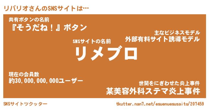 | ヘコむあだ名 | 『リバもー』『つくし』『リバぷりん』 |