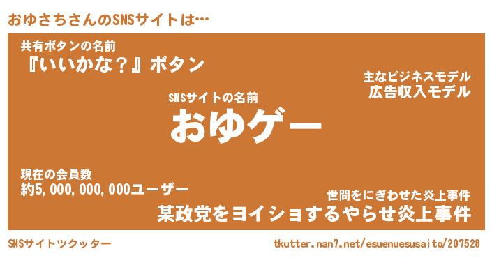 | 肩書あだ名 | 『おゆさち社長令嬢』『おゆさち大統領』 |
