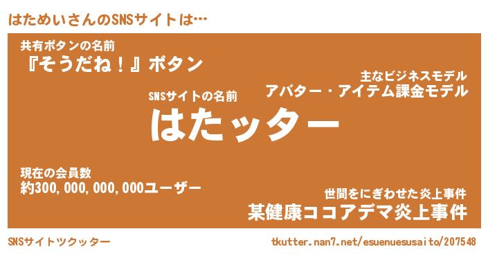 | ファンタジー風あだ名 | 『ハタフェル』『エターナルハタメイー』 |