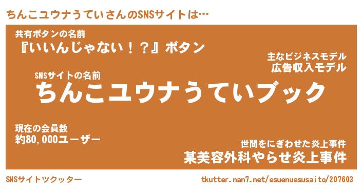| 欧米人風あだ名 | 『マイケルちんこユウナうてい』 |