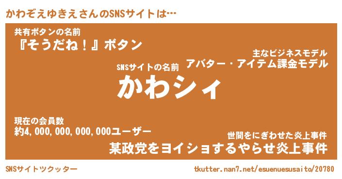| 肩書あだ名 | 『かわぞえゆきえ社長』 |