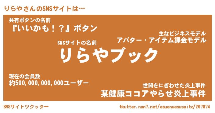 | 意味不明あだ名 | 『ペロリンりらや』『りらやフォーエバー』 |