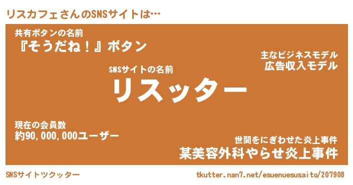 | 肩書あだ名 | 『リスカフェCEO』『リスカフェ総理大臣』 |