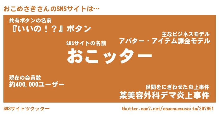 | ファンタジー風あだ名 | 『オコフェル』『エターナルオコメサキー』 |