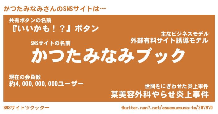 | 胡散臭い通販商品みたいなあだ名 | 『億万長者になれる霊験あらたかなお札…その名も「かつたみなみ」』 |